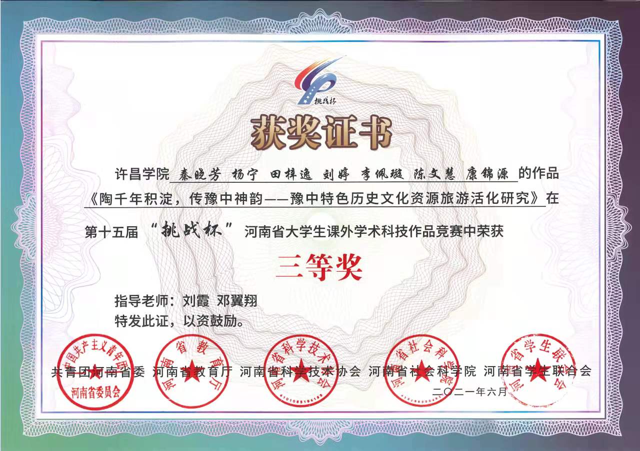 “挑战杯”省三等奖